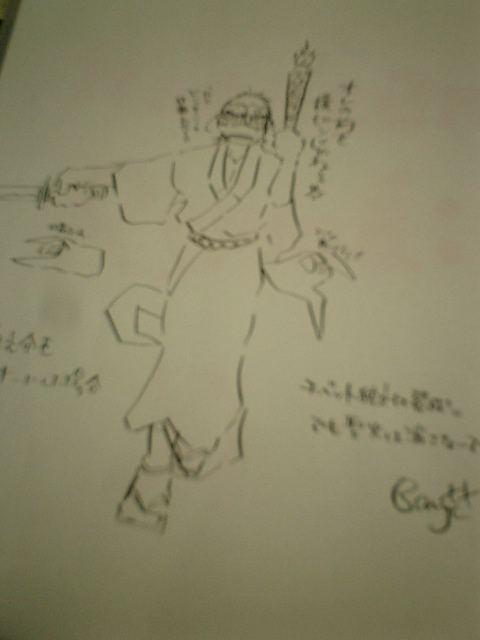 ブレブレですけど。上のは、聖火ランナーがチベット独立派に妨害を受けまくっていた時描いたもの。