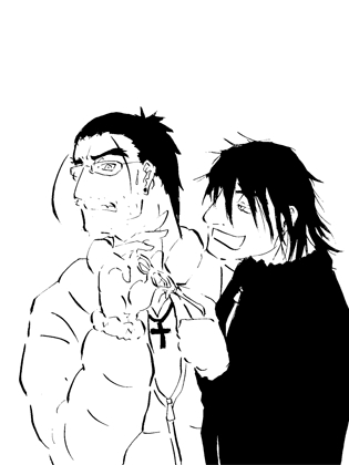 ちなみに横に有る刀の中の文字は英語に見えて実は日本語だったりする。