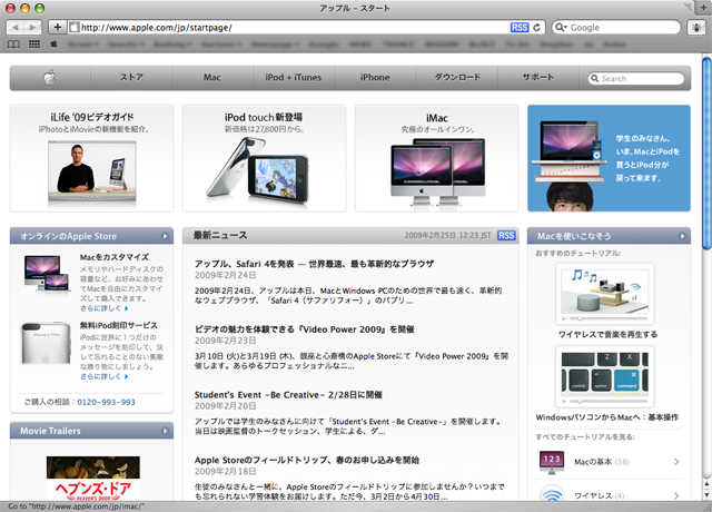 Safari 4 betaをダウンロードしてみました。