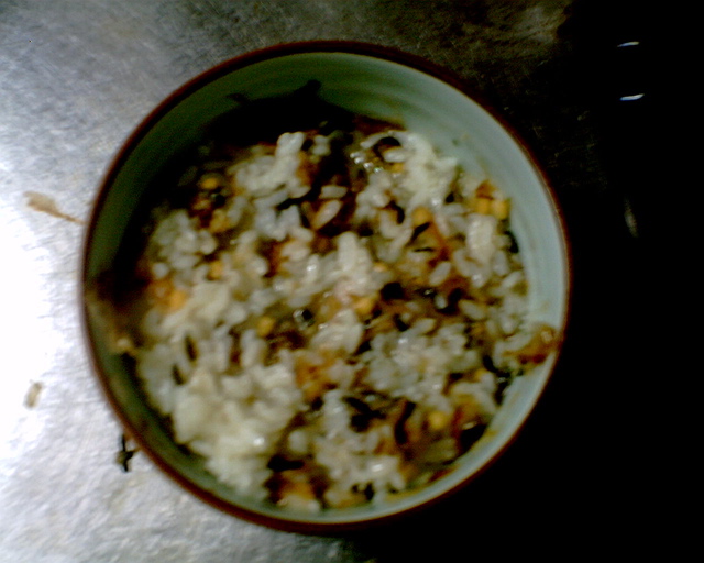 1、茶を沸かしたら、ご飯を丼に三分の二程度盛ります。