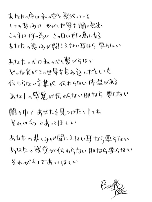 オリジナルの歌詞に書かれた文字は小説を最後の最後まで読んだ方ならピンと来るかと思いますww